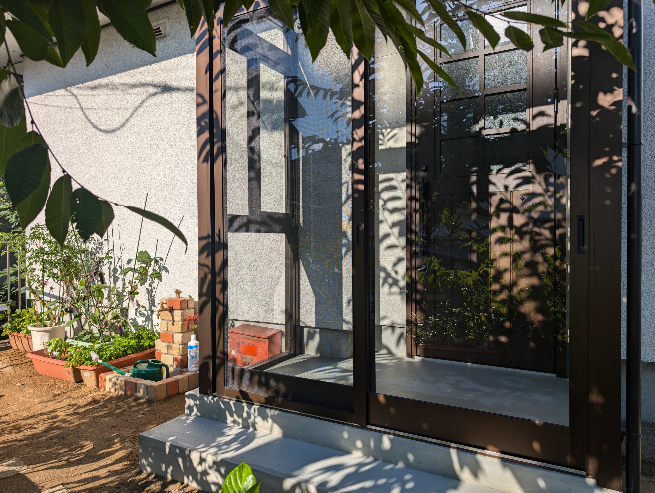 シンプルにまとめ、外からの視線が気にならない高さに明かり取りマドを計画